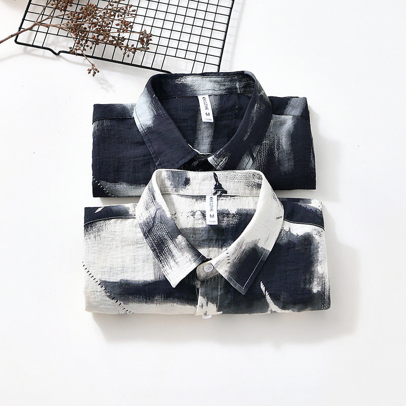 Men's Japanese Personality Printed Short-sleeved Shirt